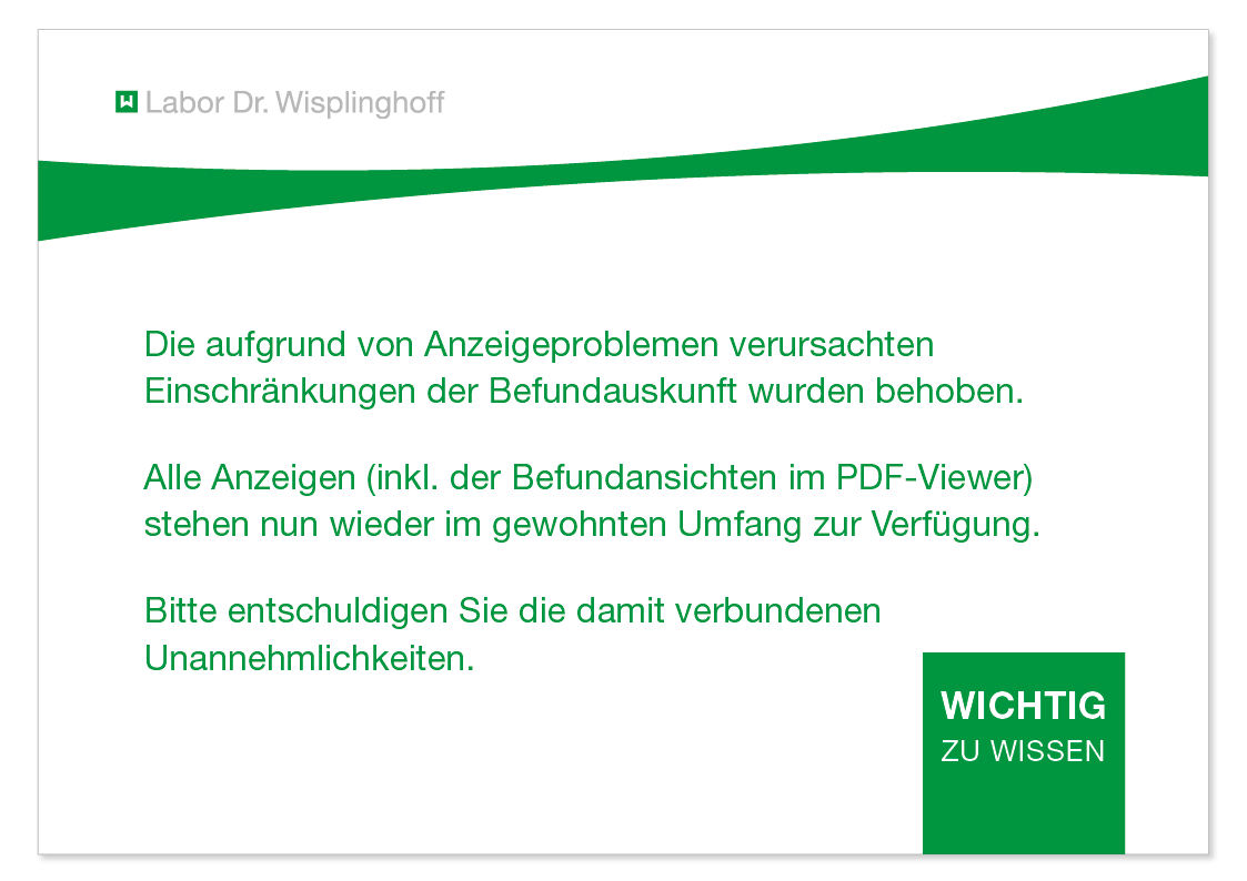 Befundauskunft wieder verfügbar